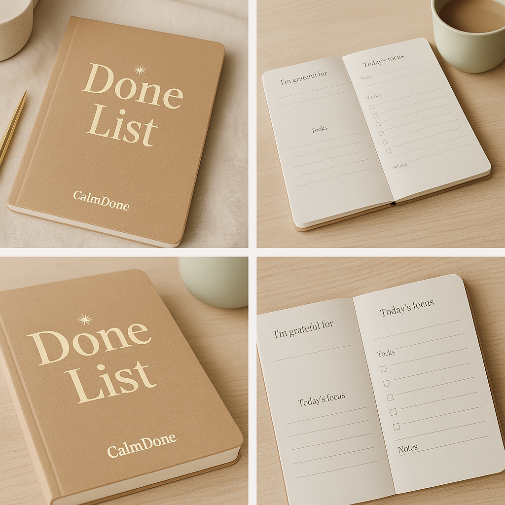 With its soft tones and minimalist pages, CalmDone™ brings peace, clarity, and quiet motivation to your day.
